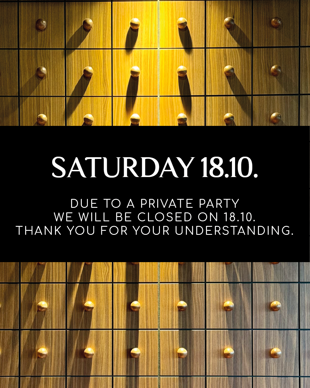 Due to a prive event we will be closed on 18.10. Thank you for your understanding.